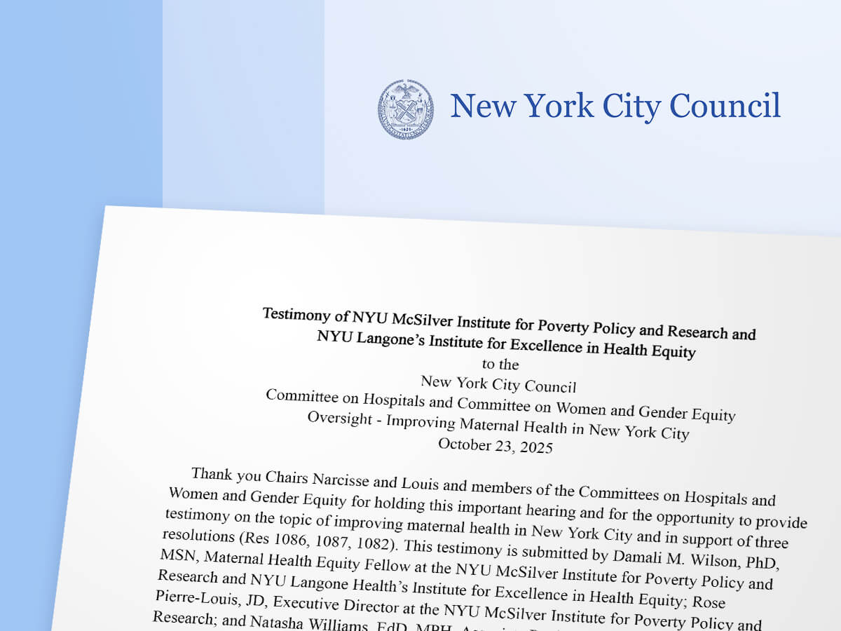 On October 23, 2025, the NYU McSilver Institute joined NYU Langone’s Institute for Excellence in Health Equity (IEHE) in submitting testimony to the New York City Council Committee on Hospitals and Committee on Women and Gender Equity, on the occasion of an oversight hearing aimed at improving maternal health in New York City. This written […]